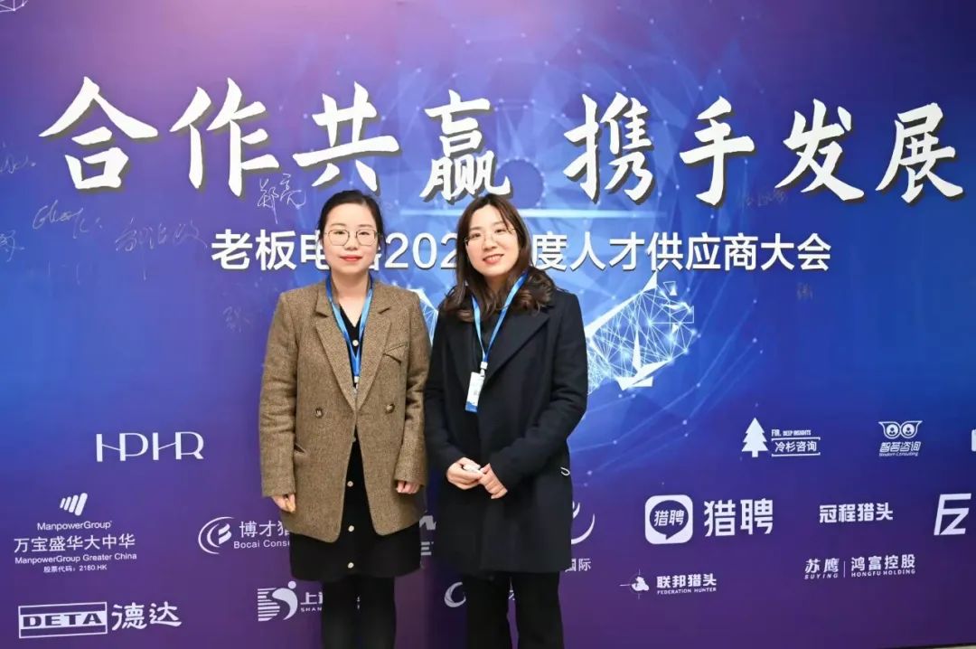 2022年1月23日老板电器2021年度人才供应商大会在杭州举办,仲望咨询荣获>“2021年度优秀供应商”,宁波 Office Manager Angel Yu 与项目负责人 Rina Zhang 出席大会。
