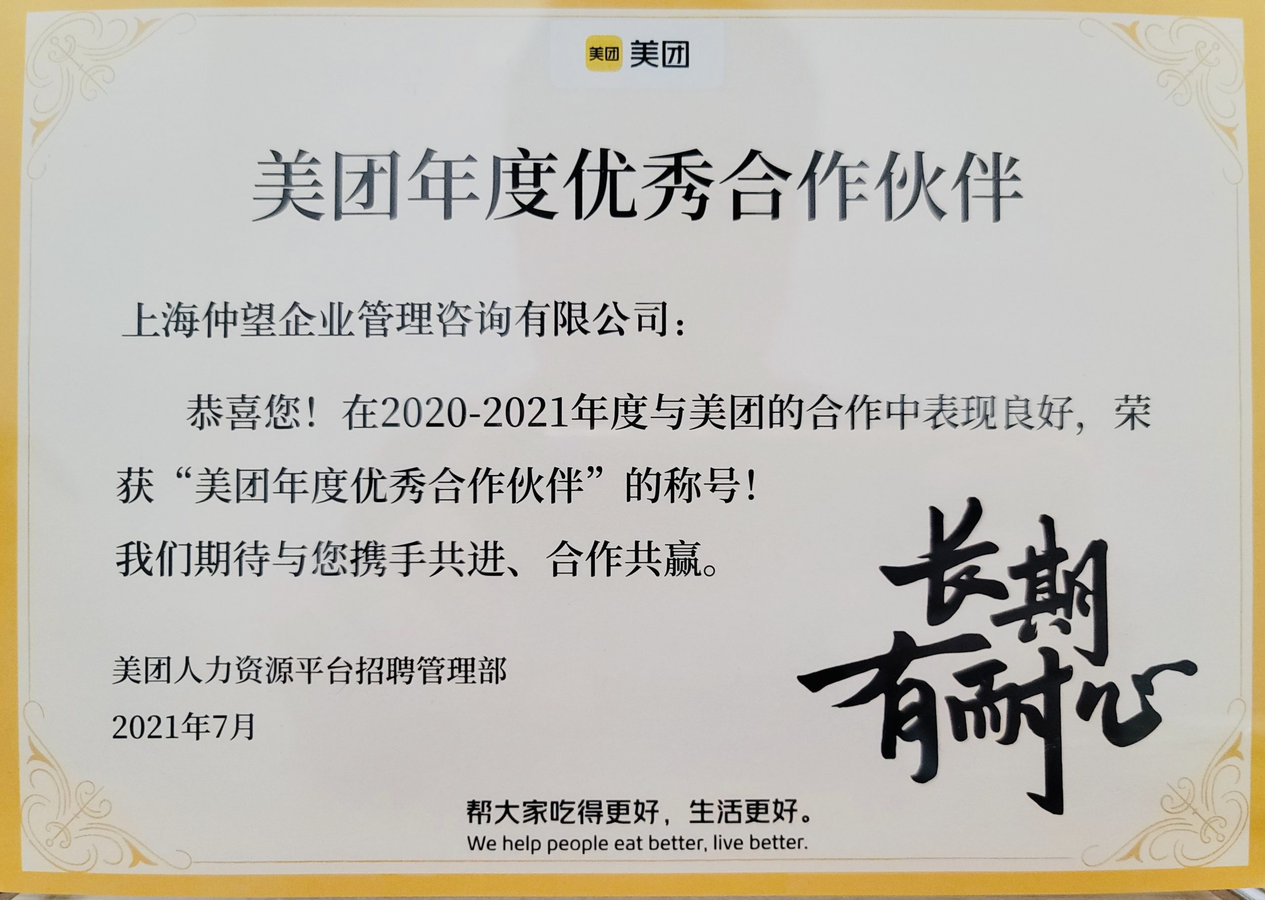 7月30日,美团猎头供应商大会于北京举办,仲望咨询凭借着专业细致的服务,获得了“2020-2021美团年度优秀合作伙伴”。深圳互联网团队负责人 James Sun 代表仲望咨询出席。