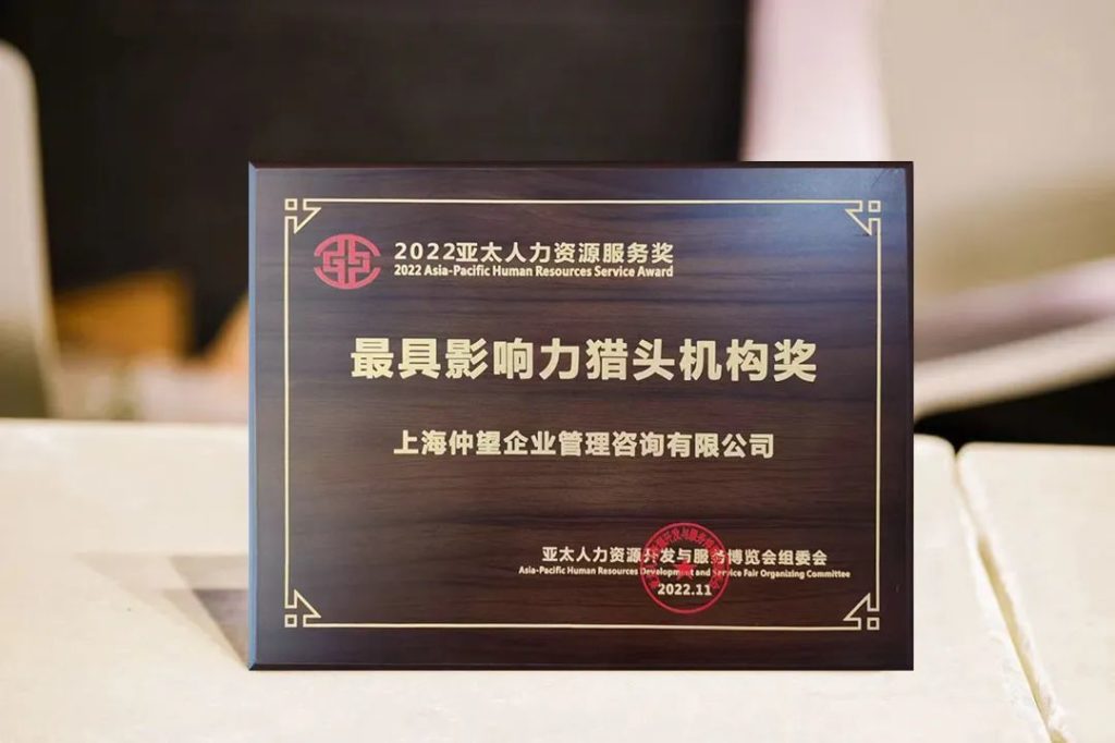 在颁奖仪式中,仲望咨询获得“最具影响力猎头机构奖”。