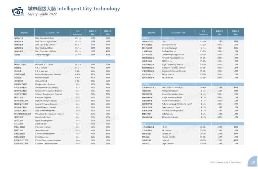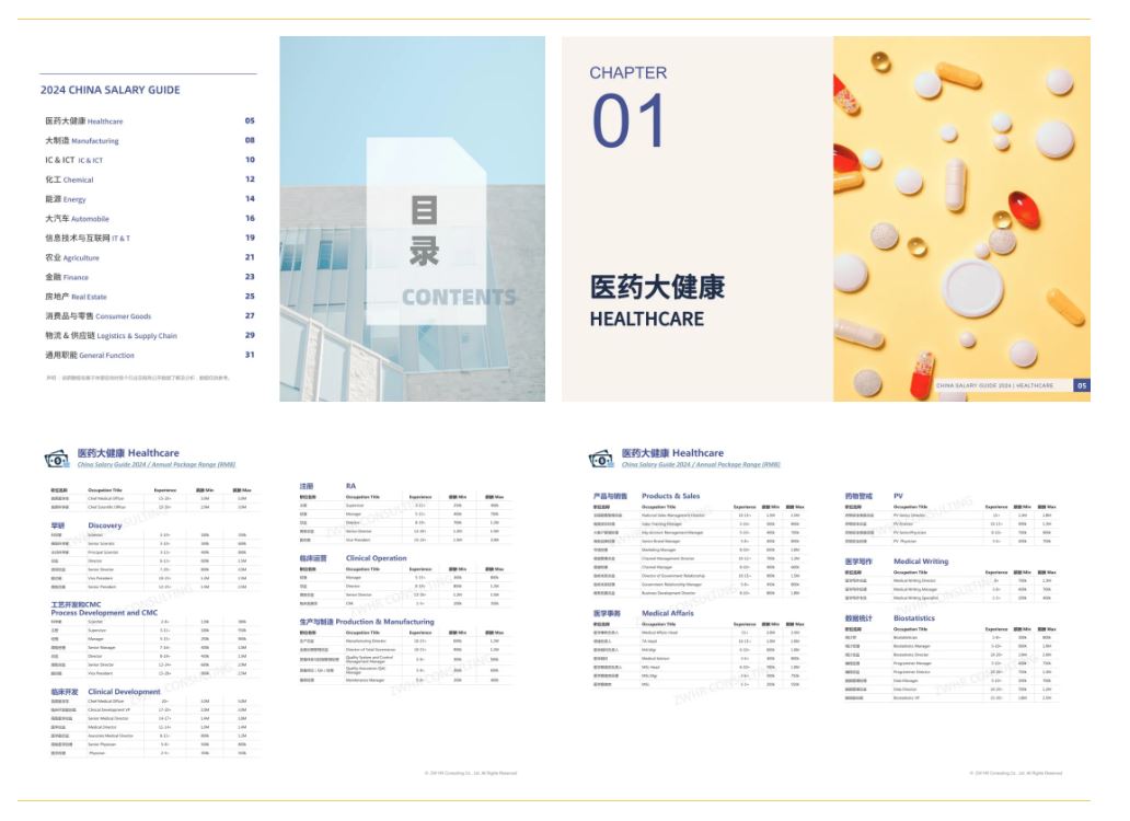 中国经济格局正在经历出海、国产化、数智化和绿色转型带来的变革。在经济不确定性加剧的背景下,雇主在经营成本和人效把控方面面临着更大的压力。但企业仍然高度重视能够带来转型和营收增长的顶尖人才,关注那些能够为企业的最终利润做出贡献的优质人才。 仲望咨询2024年度《行业薪酬观察报告》正式发布。我们根据庞大的自有人才库公开数据及市场调研分析,结合行业资深顾问的一线市场观察,为大家呈现了2024年度热门行业的薪酬范围预测。 帮助企业与人才洞察薪酬趋势,为客户在制定人才发展战略时提供参考,也帮助人才观察自身市场定位,合理制定职业规划。帮助双方在激烈的市场竞争中做出更加明智和有利的决策。 • 部分报告展示,获取完整版报告,可至文末扫码获取。 – C E O 寄 语 – 每年的薪酬报告,都是我们仲望咨询对中高端人才市场最前沿的洞察。在这个充满挑战与机遇的时代,我们再次与您相聚,共同探讨2024年的薪资趋势与人才市场动态。 ▍企业端 战略调整,注重效率与灵活性 过去的一年,市场风起云涌,我们很多行业面临战略调整的压力,很多职场人过得都不容易。我们看到,很多企业经历了变革,对人才的需求发生了巨大的变化,薪酬的主旋律也从刚性上涨到弹性十足,很多人才也在努力适应这种变化。 我们见证了数字化转型和全球化战略的不断深入,这些趋势不仅重塑了企业的运营模式,也对人才的需求提出了新的挑战。特别是在跨境领域,小语种人才的需求激增,海外营销、拓展和品牌推广等岗位的热度持续不减。企业对于多技能、多角色的复合型人才的追求,已成为新的用工趋势。 我们也注意到,企业在用人策略上更加注重效率与灵活性。在保持招聘活跃度的同时,一人多岗的配置成为常态,这要求人才不仅要有广泛的技能,还要有快速适应变化的能力。这种变化,无疑对人力资源管理提出了更高的要求,也为企业和个人带来了新的机遇。 ▍人才端 趋于保守,但高端人才仍具竞争力 在人才市场的另一端,我们观察到一种有趣的现象:尽管客户端的需求旺盛,人才端却显得相对保守。这可能源于对未来不确定性的担忧,也可能是对职业发展的深思熟虑。无论原因如何,这都提示我们,企业在吸引和留住人才时,需要提供更符合时代特点的职业路径和更灵活的福利待遇。 人才的地理流动性也是一个不可忽视的趋势。一线城市和新兴城市的热门行业继续吸引着人才的流入,而随着三四线城市的崛起,返乡就业成为新的趋势,这不仅改变了人才分布的地图,也为地方经济的发展注入了新的活力。 在薪资方面,尽管整体加薪比例有所下降,但对于某些关键岗位,如AI领域的大模型架构师,由于其稀缺性和市场的高需求,薪资涨幅依然显著。这表明,市场对于高技能人才的争夺依然激烈,企业需要在薪酬策略上做出相应的调整。 在这个不断变化的时代,我们希望通过这份报告,为您提供市场最真实的反馈。无论您是企业的决策者,还是寻求发展的职场人士,我们都希望这份报告能为您提供有价值的信息和启发。