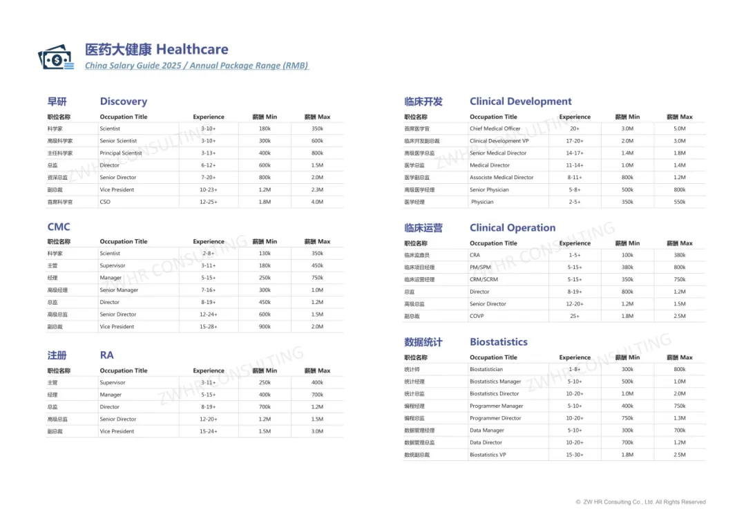 完整版报告涵盖医药大健康、大制造、IC&ICT、化工、能源、大汽车、IT&T、农业、金融、房地产、消费品、物流&供应链、专业服务、通用职能(人力资源、财务、法务)十四个行业板块。