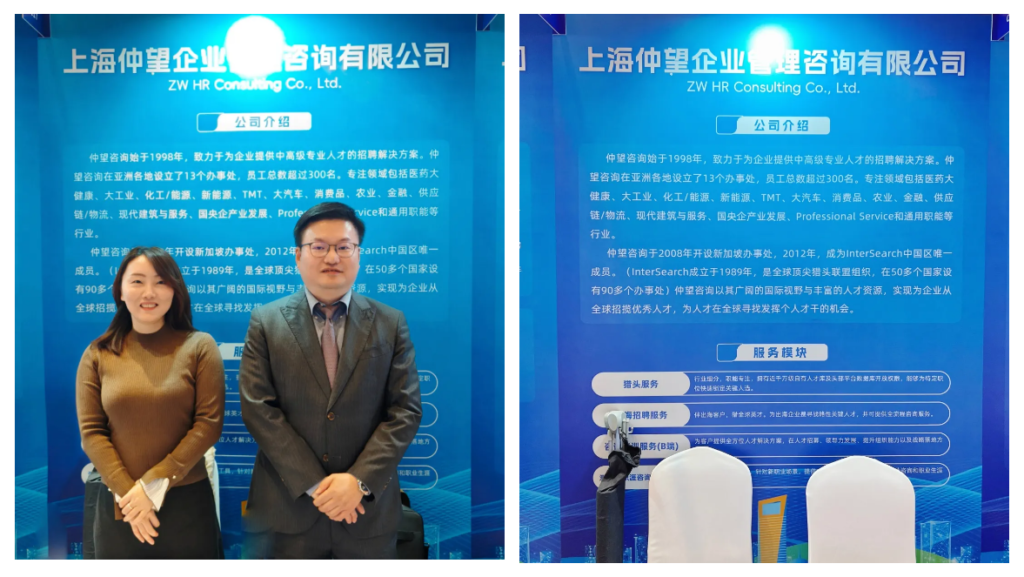 作为优质人力资源服务机构,仲望咨询也被邀请在人力资源洽谈对接区设立展台,为有意向扩展海外业务的企业提供专业的咨询和服务,助力企业迈出国门,走向世界。我们将持续提高服务标准,进一步以精准、专业、高效的服务为各行业客户的出海战略提供人才助力。伴客户出海,猎全球英才